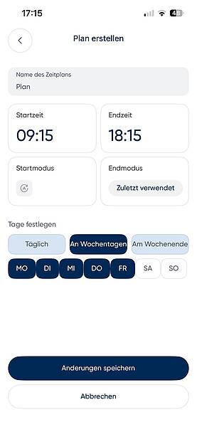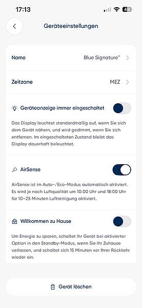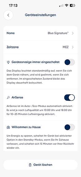 Auch lassen sich bestimmte Zeiten in einem Timer für eine stärke Luftreinigung festlegen, oder der „Näherungssensor“ aktivieren. Dieser startet dank Geofencing das Gerät, wenn sich sein Benutzer auf den Heimweg macht und schaltet den Blue Signature auf Standby, wenn dieser das Haus verlässt. Voraussetzung ist natürlich, dass der Blueair-Luftreiniger ins heimische WLAN eingebunden wurde.