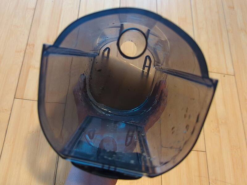 Nun steht die Reinigung des Wischsaugers an. Die Staubbehälter werden entleert, die Filter abgenommen und alles nach Anleitung ordentlich durchgespült. Das ist recht einfach und schnell bewerkstelligt. Tineco liefert sogar eine kleine Bürste mit, die die Reinigung an bestimmten Stellen erleichtert. Auch die Bürstenrolle wird herausgenommen und mit Wasser von Schmutz gereinigt. Anschließend muss alles gründlich trocknen. Hier haben wir eine kleine Schwachstelle entdeckt: Der Frischwasserbehälter ist etwas schwierig trocken zu bekommen, weil er an der Oberseite lediglich die kleine Einfüllöffnung hat, aus der das Wasser verdunsten kann.