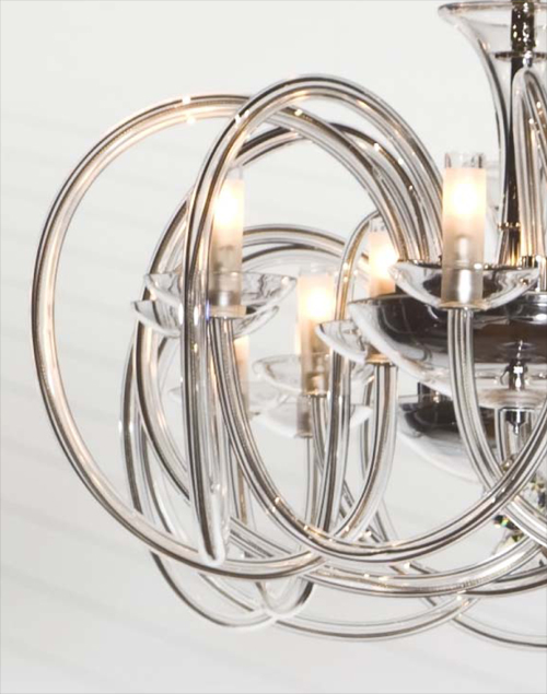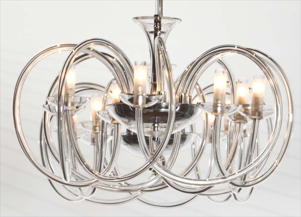 Der deutsche Hersteller Accente hat auf der IMM Cologne 2010 eine neue Design-Lampe präsentiert. Flow ist die moderne Variation eines Klassikers. Dort, wo früher beim Kronleuchter Kerzen aufgesteckt waren, befinden sich hier elektrische Halogenlampen. Charakteristische Merkmale wie Tropfteller und Kerzenform der Leuchtkörper blieben erhalten. Auch die Umrisse orientieren sich stark an historischen Vorbildern. Doch die Ausgestaltung selbst ist ganz der Postmoderne verpflichtet. Die einzelnen Arme des Kronleuchters Flow sind auf einen Bogen reduziert. Das Design verzichtet auf verspielte Details und konzentriert sich auf die Bogenform. Die Lampe von Accente ist aus mundgeblasenem Kristall gefertigt. Zwölf Halogenlampen strahlen mit je 40 Watt. Das Licht der Lampe kann auf Wunsch gedimmt werden, sodass eine angenehm gedämpfte Atmosphäre erzeugt wird. Flow hat einen Durchmesser von 1050 Millimetern und eine Höhe von 410 Millimetern.