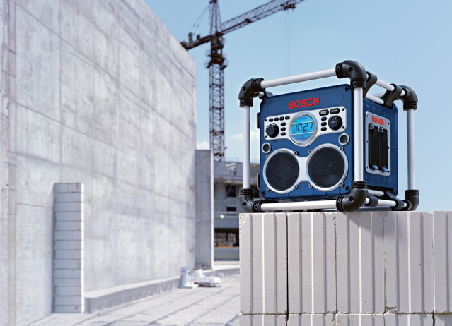 Alle bisherigen Funktionen des Radioladers bleiben auch bei der neuen Ausführung erhalten. So lädt das Gerät die Bosch-Akkus für Elektrowerkzeuge der Spannungsklassen 12 bis 24 Volt (L- oder O-Pack), dient als Stromverteiler und hat zudem einen 12-Volt-Ausgang (Autosteckdose). Das Besondere des Radioladers ist seine Robustheit: Er ist federnd in stabilen Überrollbügeln aufgehängt. So übersteht er auch Stürze aus zwei Meter Höhe völlig unbeschadet. Stahlgitter schützen die Lautsprecher und gummierte Bedienknöpfe sowie -tasten trotzen den Gefahren der Baustelle. Das MW/UKW-Stereoradio des Radioladers bietet elektronischen Sendersuchlauf und 20 Stationsspeicher. Ein Equalizer, zwei grofle 12,5-Zentimeter-Lautsprecher sowie zwei Hochtöner und ein zuschaltbarer Bassverstärker sorgen für den richtigen Sound, der selbst Baustellenlärm übertönen kann. Ist auf der Baustelle kein Netzstromanschluss vorhanden, kann das Gerät mit Bosch-Akkus (12 bis 24 Volt, NiCd & NiMH) betrieben werden.