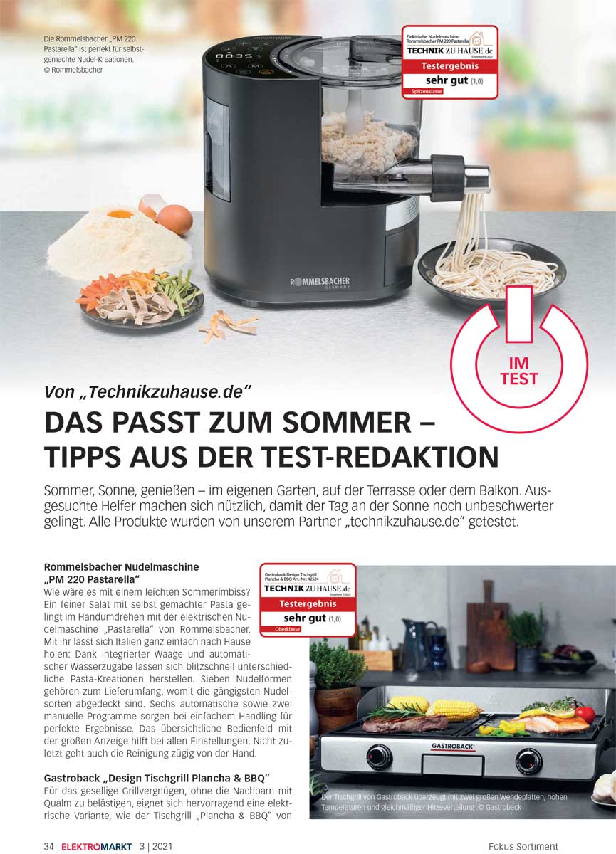 Ein weiterer Schwerpunkt im Branchenmagazin Elektromarkt liegt auf den Produktneuheiten für das zweite Halbjahr aus den Segmenten Unterhaltungselektronik, Smart Home, Haushalt, Küche, Bad und Outdoor. Technikzuhause hält in der Ausgabe vier Produkttipps für den Sommer bereit - die Produkte wurden in der Technikzuhause-Redaktion getestet.