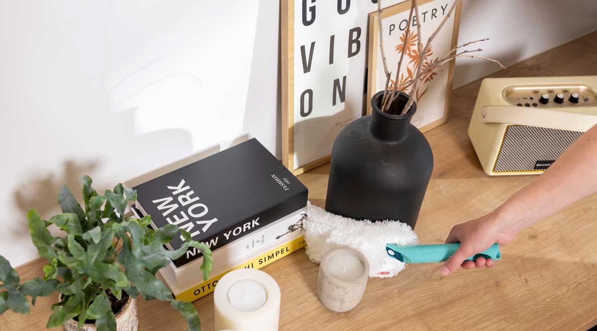 Auch beim Bodenputzen stoßen viele an ihre Grenzen: 38 Prozent empfinden diese Aufgabe als besonders mühsam. Staub, Tierhaare oder schwere Möbel machen die Reinigung zur Geduldsprobe. Effizienz bringt hier die richtige Reihenfolge: erst Oberflächen, dann der Boden. So fällt kein Staub mehr auf frisch gewischte Flächen. Für kleine Flächen oder die ganz schnelle Entfernung von Staub auf Böden empfiehlt sich die Verwendung eines Staubbezugs für Wischer, wie beispielsweise der Leifheit SUPERDUSTER in der Floor-Variante.