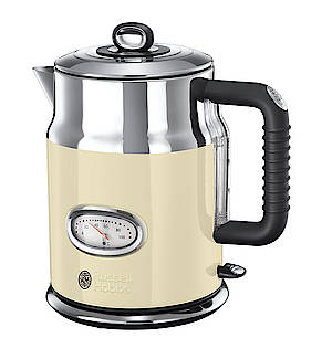 Retro-Elemente, wie der geriffelte Griff mit Russell Hobbs-Prägung und ein analoges Anzeigeelement, das die aktuelle Wassertemperatur während des Kochvorgangs zeigt, verleihen dem Retro Wasserkocher seinen optischen Charme. Mit der Schnellkochfunktion lassen sich 1, 2 oder 3 Tassen in kurzer Zeit besonders energiesparend aufkochen. Für den Kochvorgang einer Tasse (235 ml) benötigt der Wasserkocher nur etwa 45 Sekunden und spart bis zu 66 % Energie (im Vergleich zu 1,0 Liter). Der Wasserkocher besitzt ein Fassungsvermögen von 1,7 Liter und eine Leistung von 2.400 Watt. Mit der Perfect-Pour-Ausgusstülle ausgestattet ist ein tropffreies Ausgießen des heißen Wassers möglich. Der Wasserkocher hat einen abnehmbaren Deckel, einen herausnehmbaren Kalkfilter und eine Kabelaufwicklung im 360 Grad-Sockel.