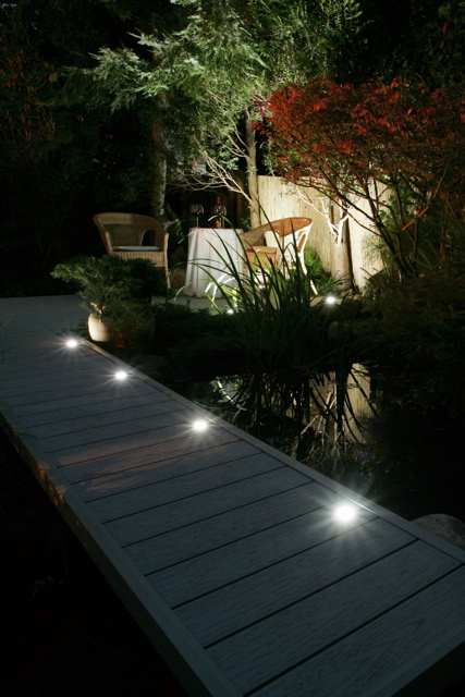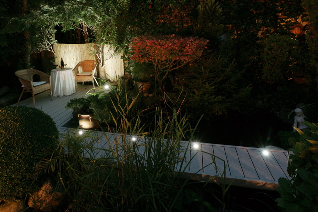 Dezent und versteckt – das ist oberste Maxime der modernen Lichtarchitektur. Vorbei sind die Zeiten, in denen Energie „fressende“ Flutlichtstrahler den nächtlichen Garten erhellten und in ein unvorteilhaft grelles Licht tauchten. Im Trend liegen kleine Lichtinseln, die besondere Stellen einer Grünanlage wie Terrassen und Wege, Mauern und Zäune, Sträucher und Steine gezielt, sanft und blendfrei ins rechte Licht rücken. Solche „Inseln“ lassen sich mit Produkten aus der neuen Gartenlicht-Serie INNO light® realisieren, zum Beispiel mit Marklights. Diese funktionieren auf Basis innovativer LED-Halbleiter-Technologie, verbrauchen nur wenig Strom und weisen eine Lebensdauer von 50.000 bis 100.000 Betriebsstunden auf. Da sie mit Niedervoltspannung betrieben werden und kaum Wärme erzeugen, geht keinerlei Gefahr von ihnen aus. Die Leuchten sind wasser- und frostbeständig, robust, erschütterungsresistent und sogar mit dem Pkw überfahrbar.