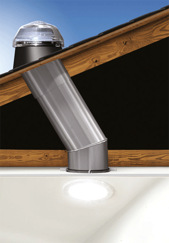 Mit der Solartube von Interferenz kommt die Sonne ins Haus. Das System sammelt auf dem Hausdacht Sonnenlicht, um es im Innern wieder abzugeben. Das bringt natürliches Licht in den dunkelsten Winkel der Wohnung.