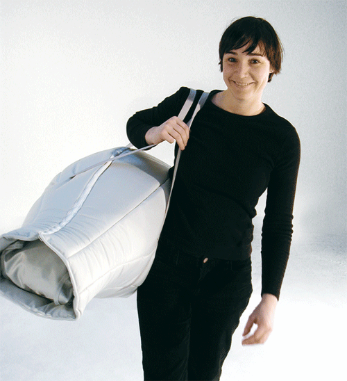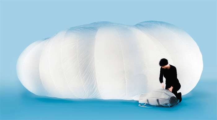 Konferenzen, Messetermine, Meetings in übervollen Restaurants - wer in der Hektik von seinem Wolkenschloss träumt, sollte Cloud von der schwedischen Designerin Monica Förster dabei haben. Tragbar wie eine große Sporttasche lässt sich das Zelt mit einem elektrischen Gebläse schnell aufpusten.