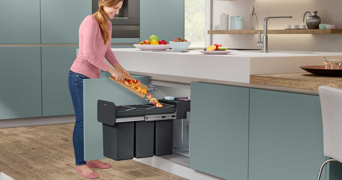 Ein improvisierter Behälter hier, ein Eimer dort – schnell wirkt die Küche unaufgeräumt. Abhilfe schaffen zum Beispiel integrierte Abfalltrennsysteme, die sich hinter der Schrankfront verbergen, leicht zu bedienen sind und mehrere Abfallarten sauber trennen. Wer eine unsichtbare Lösung im Schrank sucht, findet im HAILO Ecoline Design Trio L die passende Lösung. Das System verschwindet platzsparend im Unterschrank, lässt sich leicht herausziehen und bietet drei separate Behälter zur strukturierten Trennung von Abfällen. So bleibt die Küche aufgeräumt, das Design klar – und die Mülltrennung gelingt ganz nebenbei mit einem Handgriff.