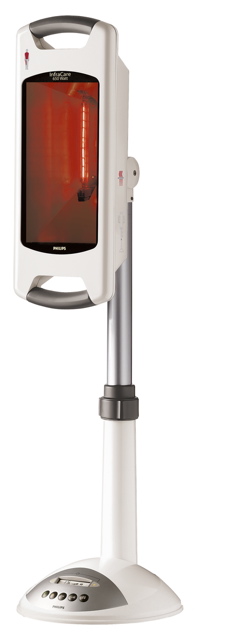 InfraCare HP3621 mit einer 200 Watt Infrarot-Halogen-Lampe ist optimal für die Bestrahlung einzelner Körperpartien (Bereich von 20 x 30 cm), zum Beispiel von Schulter, Ellbogen, Wade oder Nacken. Für eine gezielte Bestrahlung lässt sich das Lampengehäuse mit dem Soft-Touch-Griff im Winkel von bis zu 40 Grad (nach hinten) leicht ausrichten. Das Gerät ist mit einem 2 m langen Kabel ausgestattet. Dank seiner kompakten Größe lässt es sich einfach transportieren und verstauen.