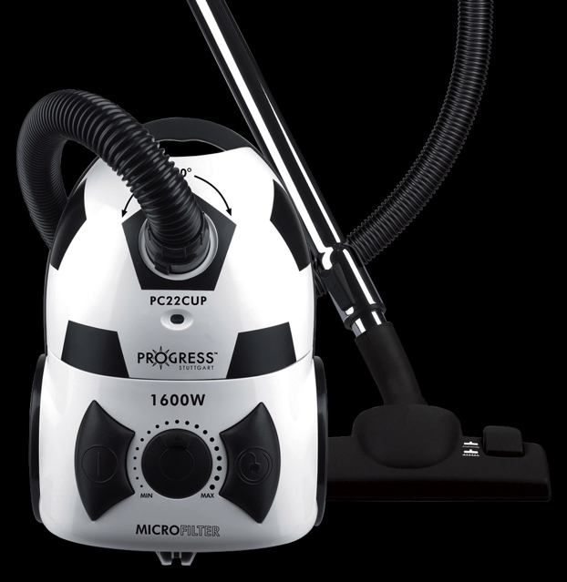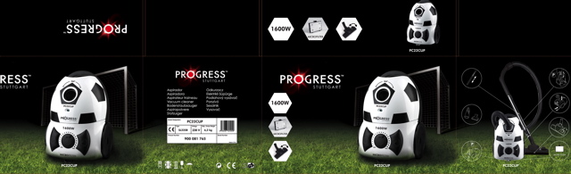 Der Progress PC22Cup besticht nicht nur durch sein fußballähnliches Äußeres, auch seine Ausstattung verspricht erfolgreiche Heimspiele. Für Aufmerksamkeit und Interesse bei der Käuferschaft sorgt eine passende Verpackung, die den Staubsauger auf grünem Rasen darstellt. Seine inneren Stärken zeigt der Progress PC22Cup dann auf dem Teppich: Der Fußball-Staubsauger rollt mit 1.600 Watt über den Teppich und bietet neben Microfilter und einer elektronischen Leistungsregulierung auch eine Parkschiene für die Arbeits- oder „Spielpause“. Eine Staubbeutelfüll-Anzeige und eine Vario 500 Bodendüse runden das kleine Energiebündel ab.
