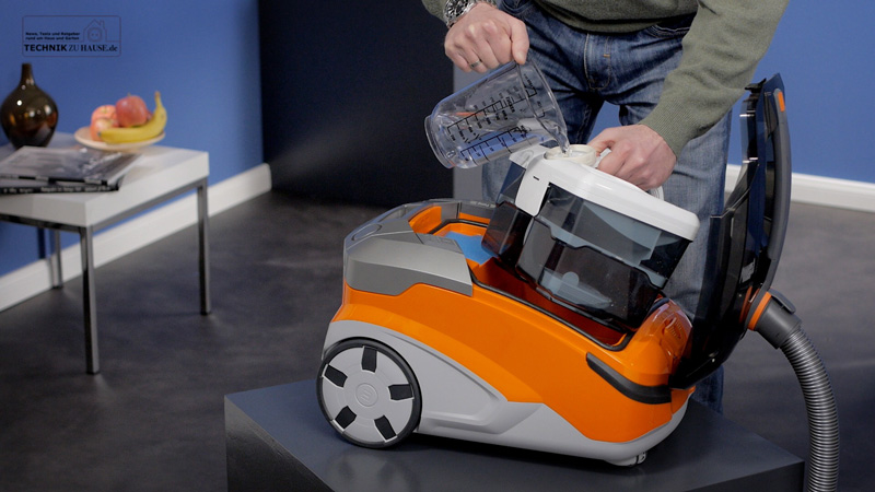 Neben der klassischen Trocken-Saugfunktion über einen konventionellen Schmutzfangbeutel, ist der Pet & Family mit einem Aqua+ Filter-System ausgestattet. Das erlaubt es, mit nur einem Liter Wasser Feinstaub und Schmutzpartikel zu binden.