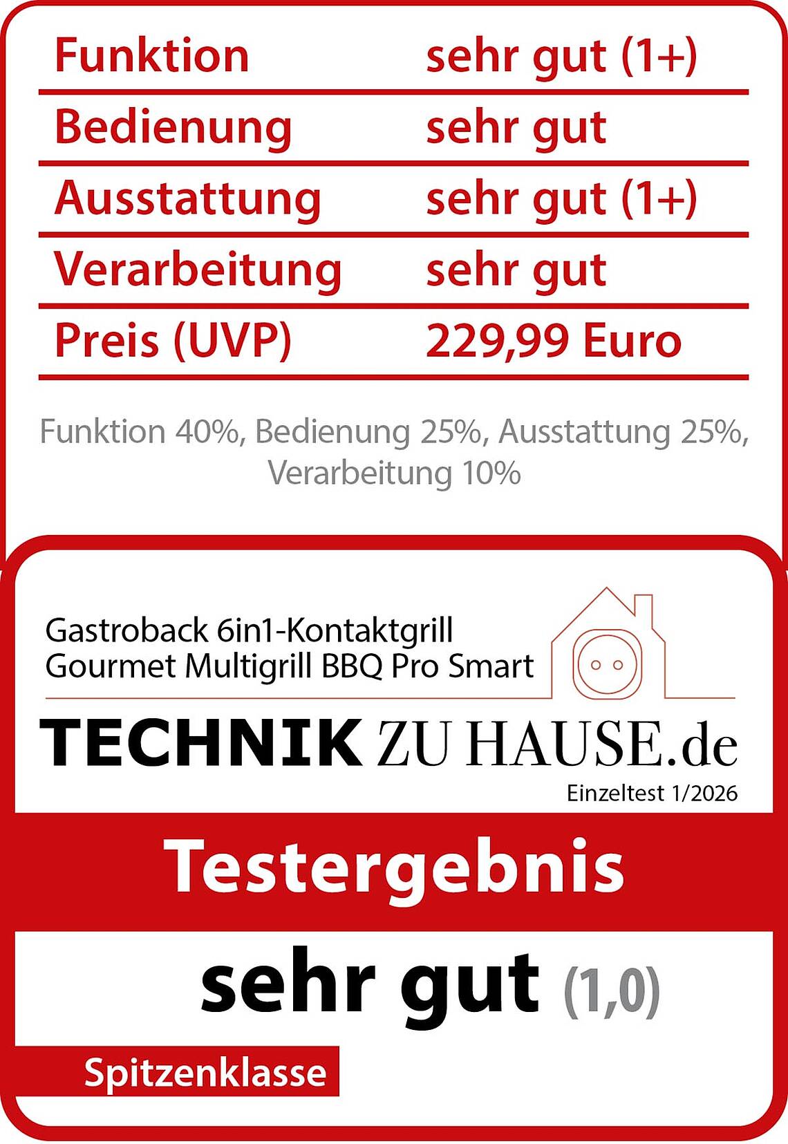 Sechs auf einen Streich:Gastroback Gourmet Multigrill BBQ Pro Smart im Test Testredakteur: Carolin Nevermann, 28. Jan. 2026, Fotos: Hersteller, Technikzuhause