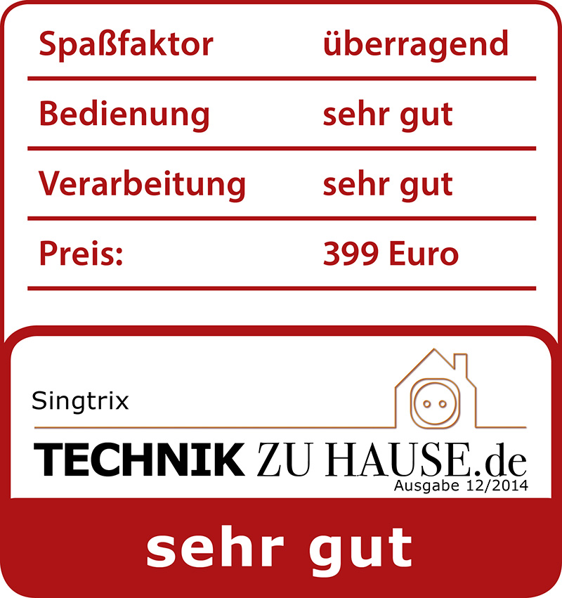 Ein wenig skeptisch waren wir schon, als der kleine Karton mit der neuen Karaoke-Anlage ankam. Sollte sie doch auch dem Gesangs-technisch gar nicht versierten Schreiber dieser Zeilen vernünftige Töne entlocken. Da das Wochenende vor der Tür stand, nahm ich kurzerhand Singtrix mit nach Hause, um die Familie und Freunde, die sich zum Besuch angemeldet hatten, mit ein paar Hits zu beglücken. Um es vorwegzunehmen: Singtrix war das Spaßprogramm für das ganze Wochenende!