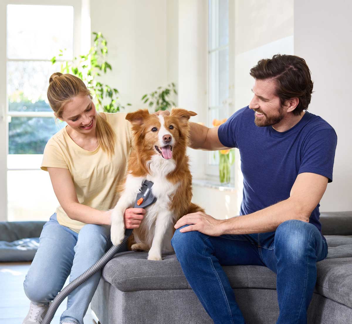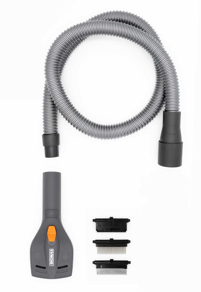 Die Düse wird ganz einfach an einen beliebigen THOMAS Tierliebhaber-Staubsauger angeschlossen und der saugt dann alle abgebürsteten Haare direkt ein. Dank des 1,60 Meter langen Verlängerungsschlauchs kann das Gerät während des Kämmens im Nebenraum abgestellt werden, so ist es für Haustiere stressfrei. Die komfortable Einhandbedienung ermöglicht zusätzlich ein entspanntes Pflegeerlebnis, sowohl für Tier als auch für die „Pawrents“.