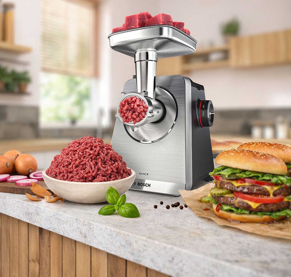 Der neue Fleischwolf MultiPower Serie 8 von Bosch verspricht eine leistungsstarke und vielseitige Lösung für alle, die frische Zutaten zuverlässig selbst verarbeiten möchten. Ob für Hobbyköche, Familien oder Food Lover – das Gerät vereint kraftvolle Performance mit einfacher Handhabung. Dazu gibt es vielfältige Aufsätze für kreative Rezepte: von Bolognese über hausgemachte Wurst, Veggie-Patties, Falafel bis hin zu frisch gemahlenen Gewürzen oder sogar Kaffee.