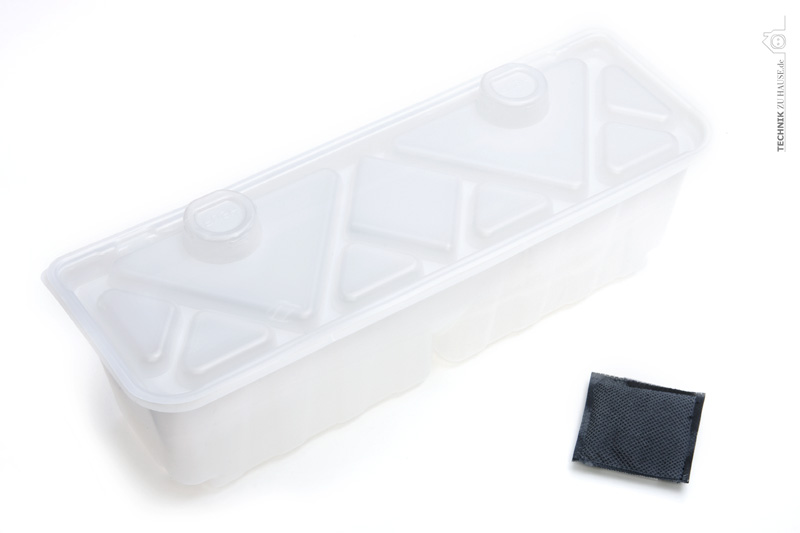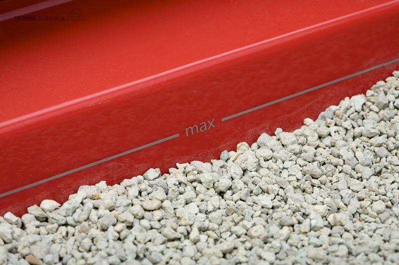 Die Entsorgungsbox, von der vier zum Lieferumfang der Litter Maid gehören, werden unter die Öffnungsklappe im Eingangsbereich eingesetzt. Der dazu passende Deckel ist ebenfalls schnell befestigt und sorgt dafür, dass das Geschäft des Vierbeiners nahezu geruchsneutral verpackt ist. Wenn nun wie oben beschrieben, die verdreckte Streu nach vorn geschoben wird, sorgt der Motor gleichzeitig dafür, dass die Klappe über der Entsorgungsbox sich öffnet und der Dreck darin verschwindet. Damit dieser Vorgang ordnungsgemäß und vor allem zuverlässig arbeitet, ist die Rampe inkl. Abdeckklappe relativ leicht gebaut, wodurch sie jedoch auch ein wenig wackelig wirkt. Für Katzen, die nicht gerade der Super-Schwergewichtsklasse angehören, kein Problem. Die Entsorgungsbox lässt sich einfach und schnell samt Deckel entnehmen und verschwindet vollständig im Müll. Für alle Katzenfreunde ist dies praktisch und mit einem Handgriff zu erledigen. Zudem muss es nicht nach jedem Einsatz gemacht werden, sondern wenn die Box gefüllt ist. So kann man Katze samt Toilette auch mal mehrere Stunden oder Tage allein lassen, ohne dass die Wohnung wie eine schlecht gewartete, öffentliche Bedürfnisanstalt muffelt.