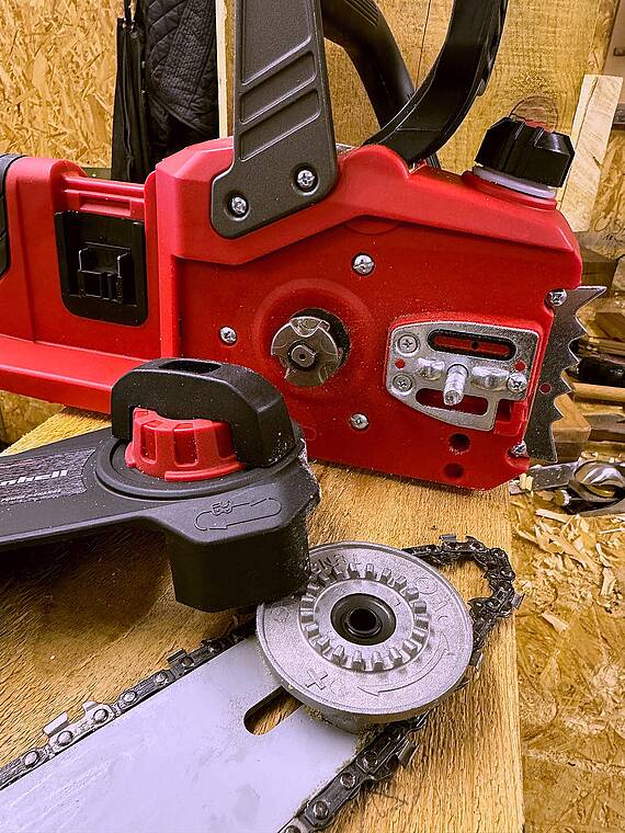 Dieses nicht unerhebliche Gewicht stört aber im üblichen (und sicheren) Einsatz einer Kettensäge kaum. Die Einhell GP-LC 36/35 ist gut ausbalanciert und an den beiden Griffen auch mit kleineren Händen gut zu kontrollieren.