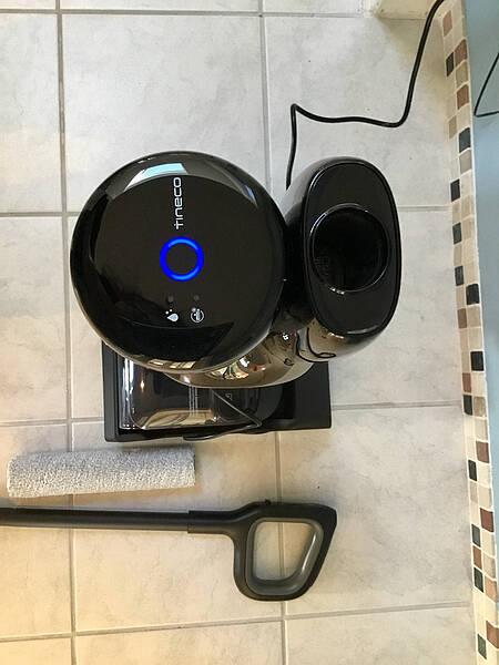 Der kabellose Antrieb erfolgt über einen Lithium-Ionen 4.000 mAh Akku, der im Gerät fest installiert ist. Zum Laden des Akkus liefert Tineco eine Trocken-Ladestation mit, die außerdem als Homebase und „Waschmaschine“ fungiert. Für die Selbstreinigung braucht es nur einen Knopfdruck am Gerät und die Station wäscht und trocknet die Bürste bei circa 85° C.