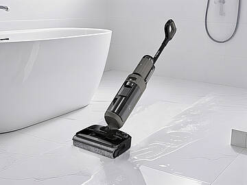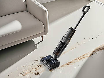 Mit dem Tineco FLOOR ONE i6 STRETCH PLUS steht einem ein wahrer Putzprofi zur Seite, der die Arbeit gründlich und leise erledigt, komfortabel zu bedienen ist und im Handling richtig Laune macht. Mit zwei geräumigen Wassertanks – einem für Frisch- und einem für Schmutzwasser – und der mitgelieferten Reinigungsflüssigkeit wird Schmutz wirklich exakt entfernt und gleichzeitig ein feiner Raumduft verbreitet. Der leistungsstarke Akku bietet eine Laufzeit von maximal 40 Minuten und liefert zusammen mit dem Bürstenmotor eine starke Saug- und Wischkraft, die quasi selbstfahrend und mühelos bis an die Kanten zum Einsatz kommt. Praktische Funktionen wie das Absenken um 180° Grad, Schwenken nach rechts und links um 45° sowie der Arbeitspause-Modus gestalten die Bedienung noch komfortabler. Für gründliche Hygiene sorgt die praktische Selbstreinigung (85°) an der Docking-Station, das einfache Entleeren des Schmutzwassertanks und die Reinigung der Bürstenkammer. Für einen UVP von 399 Euro ist der Tineco FLOOR ONE i6 STRETCH PLUS rundum gelungen und erhält neben einer klaren Note 1 von der Redaktion einen PRAXIS-TIPP!