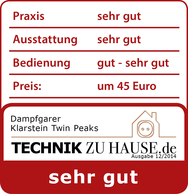 Der Klarstein Twin Peaks Dampfgarer bietet mit seinen beiden separaten Garbereichen und den vier Behältern enorm viel Platz und Vielseitigkeit. Die Behälter könnten etwas standfester sein, lassen sich aber insgesamt gut handhaben. Vom Garergebnis und dem tollen Geschmack, spezielle beim Gemüse, waren wir sehr angetan. Auch die Reinigung des Klarstein Twin Peak Dampfgarers ist im Handumdrehen erledigt. Wer in die gesunde Zubereitungsmethode einsteigen möchte, findet mit dem Klarstein Twin Peaks Dampfgarer mit einem Verkaufspreis von rund 45 Euro einen prima Verbündeten.