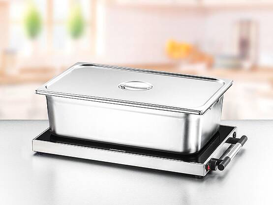 Wichtig ist, dass die Behälter, die auf die Platte gestellt werden, und die beheizte Glasplatte keine großen Temperaturunterschiede aufweisen. So muss man die Warmhalteplatte vorheizen, bevor heiße Töpfe daraufgestellt werden, oder man stellt leere Behälter, Schüsseln oder Töpfe auf die Platte, während sie aufheizt, und füllt nach dem Erreichen der gewünschten Temperatur die warmen oder heißen Speisen ein.