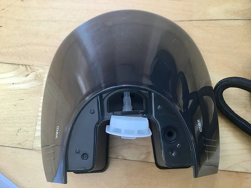 Saubere Kleidung, wünscht sich auch sauberes Equipment; kurzum, die Dampfbürste sollte man gut in Schuss halten. Die Oberflächen – also Gehäuse und Keramikplatte – kann man einfach mit einem feuchten Tuch reinigen und anschließend nachtrocknen. Vorne am Gerät ist eine Filterabdeckung. Diese funktioniert magnetisch und lässt sich bequem entfernen und wieder anbringen. Rückstände und Flusen, die sich darunter gesammelt haben, kann man prima mit der mitgelieferten Reinigungsbürste beseitigen. Für die Reinigung der Dampfauslassöffnungen schaltet man das Gerät ein und bewegt es sanft über einen Lappen. Damit auch der Wassertank tipptopp bleibt, sollte nach jeder Anwendung übrig gebliebenes Wasser ausgeleert werden.
