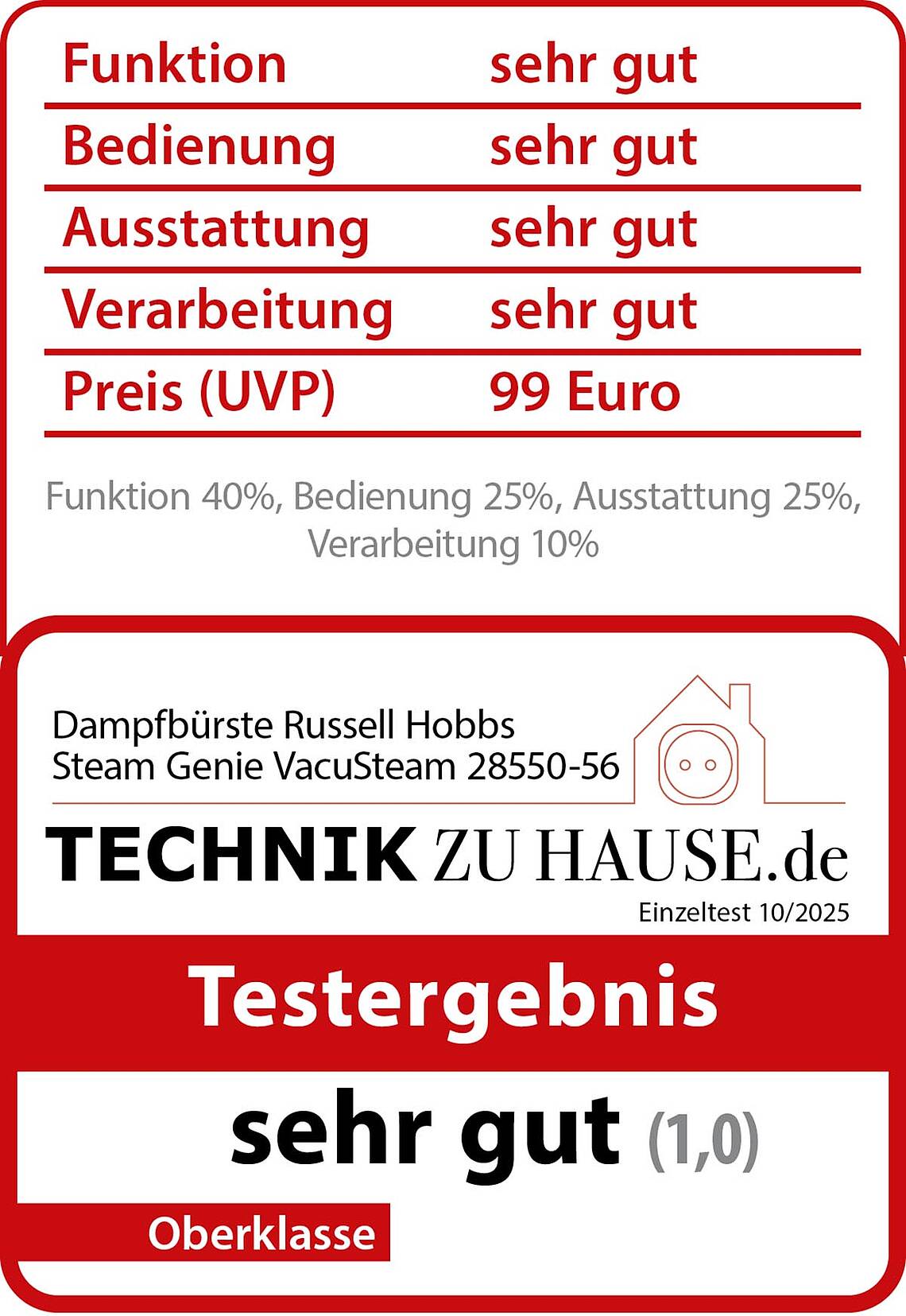 Russell Hobbs Steam Genie VacuSteam Dampfbürste im Test:Bye-bye Knitterlook – Schnell & Smart zu glatter Kleidung Testredakteurin: Claudia Wagner, 23.10.2025, Bilder: Russell Hobbs & TechnikzuHause