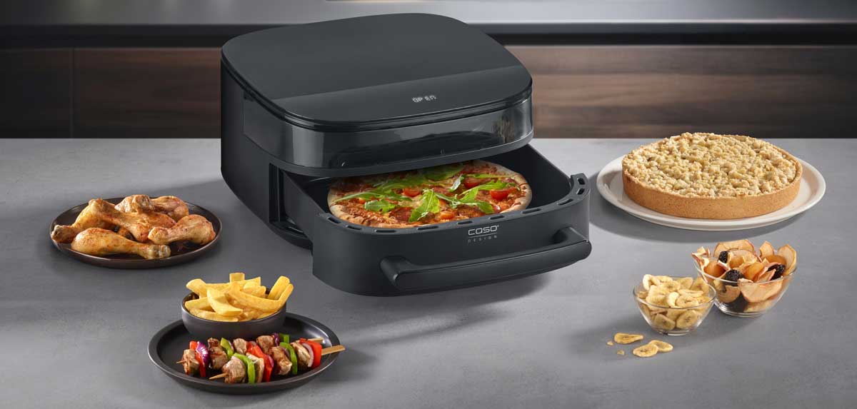 Top: Mit der AirFry & PizzaChef lassen sich laut Hersteller bis zu 50 % Zeit und sogar bis zu 70 % Energie sparen - im Vergleich zur Zubereitung in einem herkömmlichen Backofen. Mehr geht nicht – jetzt ausprobieren!