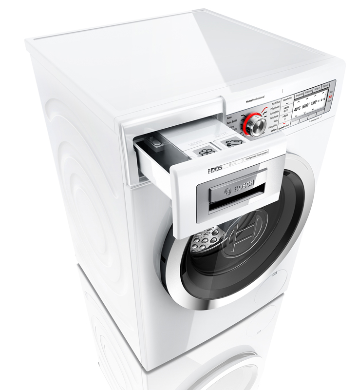 Lieber mehr Waschmittel, oder weniger? Das intelligente Dosier-System i-Dos von Bosch bereitet diesem Problem ein Ende. Aus einem Vorratsbehälter fördern integrierte Präzisionspumpen genau die Menge handelsüblichen Flüssigwaschmittels, die für ein ideales Waschergebnis benötigt wird. Wie viel das genau ist, richtet sich nach der Wäschemenge, dem Verschmutzungsgrad sowie der Wasserhärte. In den Automatikprogrammen ermitteln hochsensible Sensoren zuverlässig den Wasser- und Waschmittelbedarf der Wäsche und übernehmen zusammen mit der komplexen Dosierarbeit auch die Auswahl der restlichen Wasch-Parameter. Als Teil der Premium-Design-Familie HomeProfessional ist i-Dos von Bosch besonders attraktiv, denn die anspruchsvolle, funktionale Gestaltung unterstützt die einfache Bedienung des i-Dos Systems. LEDs zeigen genau an, in welcher Kammer sich Flüssigwaschmittel oder Weichspüler befindet. Auch die Visualisierung der Dosierstärke wurde optimiert, und die Einstellung von Basisdosierung oder Befüllung der Dosierkammern erfolgt über die verbesserte intuitive Bedienführung. Neben der i-Dos-Automatik verfügt das neueste Modell aus der HomeProfessional-Reihe auch über die VarioPerfect-Waschlogik, mit der sich in fast allen Programmen zwischen besonders schnell – SpeedPerfect – und besonders sparsam – EcoPerfect – wählen lässt. Möglich wird diese Flexibilität erst durch den extrem leisen und langlebigen EcoSilence-Drive. Auf diesen bürstenlosen, robusten Motor gibt Bosch eine Garantie von 10 Jahren bei den HomeProfessional Waschmaschinen.