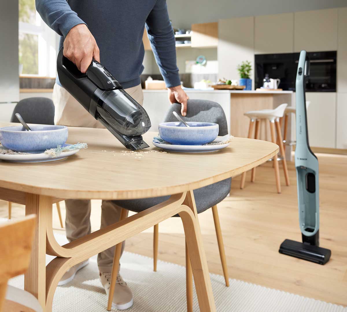 Der Flexxo Serie 4 erreicht nicht nur den Staub und Schmutz in allen Ecken und Winkeln, er saugt ihn auch zuverlässig auf. Er ist der bisher leistungsstärkste, freistehende Akku-Staubsauger von Bosch. Von groben Verschmutzungen bis zu feinstem Staub schafft der Flexxo alles und bietet beeindruckende Power auf allen Bodenarten, von Hartböden bis zu Teppichen. Ob beim Vorwärts- oder Rückwärtssaugen, der Flexxo verspricht sichtbar saubere Ergebnisse bereits beim ersten Durchgang.