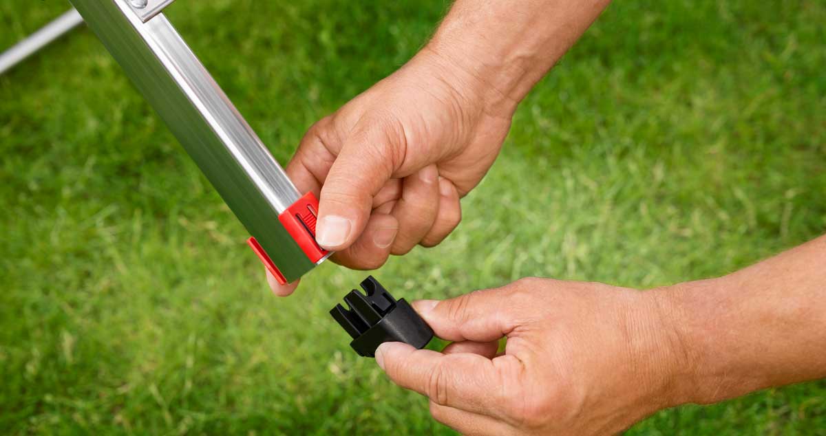 Zusätzlicher Sicherheitsbonus ist der ausziehbare Sicherheits-Haltebügel, der beim Arbeiten in größeren Höhen eine Möglichkeit zum Festhalten bietet. Außerdem mit Multifunktionsschale für Pinsel, Schrauben und Zubehör damit beide Hände frei bleiben. Für einen sicheren Stand auf unebenem oder weichem Boden sorgt EasyClix Garden: Das innovative Fuß-Wechsel-System verhindert zum Beispiel auf Gartenböden das Einsinken.