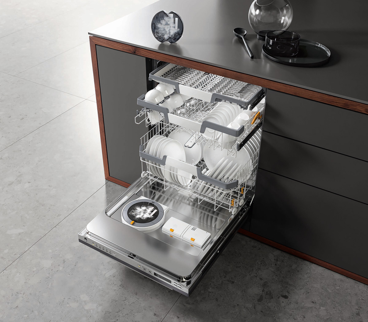 „Nachhaltigkeit ist heute für jeden erschwinglich“, so AMK-Chef Volker Irle. Ein Benchmark in puncto Nachhaltigkeit setzen neue Geschirrspüler in der höchsten Energieeffizienzklasse A. Die Einbau-Modelle überzeugen zudem mit modernster Technik, niedrigen Geräuschemissionen, mit Hygiene und Komfort, und das quer durch alle Preisklassen. Beispielweise mit einer automatischen Türöffnungsfunktion: Um den Energieverbrauch deutlich zu senken, wird die Heizphase am Ende des Spülprogramms gezielt früher abgeschaltet. Zugleich öffnet sich die Tür des Geschirrspülers einen Spalt weit und erreicht dadurch eine gezielte Luftzirkulation, sodass die Restfeuchte auf natürliche Weise entweicht. Oder mit dem Feature automatische Dosierhilfe – die jeweils richtige Dosierung des Reinigungsmittels und Klarspülers für optimale Reinigungsergebnisse statt einer Über- oder Unterdosierung.