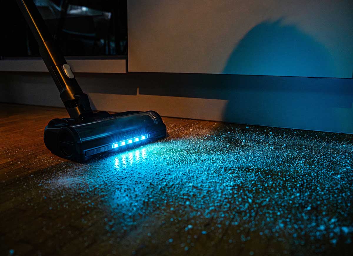 Ein besonderes technisches Detail ist die VisionBlue-Weitwinkel-LED-Feinstaubausleuchtung. Durch gezielte Lichtstreuung werden selbst feinste Staubpartikel sichtbar. So wird Reinigung nicht nur messbar, sondern unmittelbar nachvollziehbar. Das integrierte LCD-Display informiert übersichtlich über Reinigungsmodi, Batteriestatus sowie notwendige Wartungsschritte. Der Betrieb ist ausschließlich mit eingesetztem Filter möglich, wodurch Fehlbedienungen vermieden werden. Ergänzend verstärkt das bewährte Super-Rohr die Luftstromführung und sorgt insbesondere bei schwerem oder kompaktem Schmutz für eine nochmals erhöhte Saugleistung.