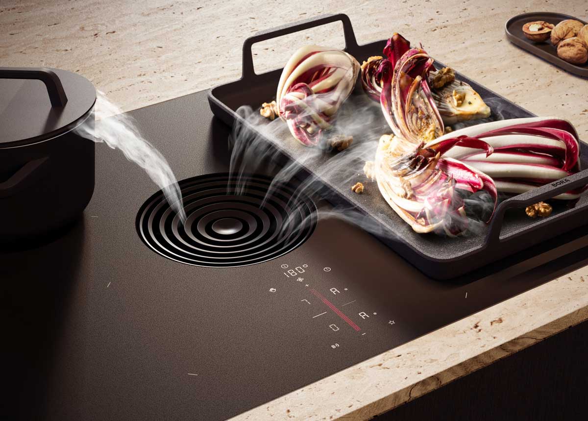 „Mit zu den Bestsellern im Bereich Lüftungssysteme zählen Kochfelder mit einem integrierten Dunstabzug“, so Marktkenner Volker Irle. „Die innovativen 2in1-Lösungen mit automatischer Steuerung des Abzugs sind nicht nur in offen geplanten Wohnküchen begehrte Einbaugeräte. Als platzsparende Modellvarianten eignen sie sich auch z. B. für kleine Küchen, Ferienwohnungen und Büroküchen.“ Die praktischen Kombiprodukte lassen sich frei planen. Sie arbeiten effizient und leise und fügen sich in moderne wie auch klassische oder Crossover-Küchen-Styles harmonisch ein.