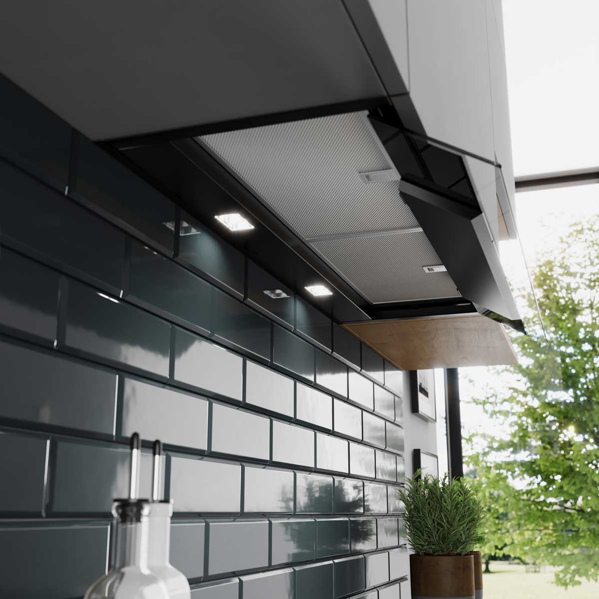 „Die Angebots- und Planungsvielfalt im Bereich Dunstabzugssysteme eröffnet heute ganz neue Wege bei der Individualisierung von modernen (Wohn-)Küchen: beispielsweise mit einer der dekorativen Designhauben für die Wand oder Decke bis hin zu den diversen, nahezu unsichtbar integrierten Einbaumodellen“, erläutert Volker Irle, CEO der AMK – Arbeitsgemeinschaft Die Moderne Küche e.V.. „Darüber hinaus performen sie sehr effizient, leise und vollautomatisch.“ Einige neue Hauben, die in einen Oberschrank integriert werden, sind so platzsparend konzipiert, dass sie zusätzlich auch noch Stauraum bieten.