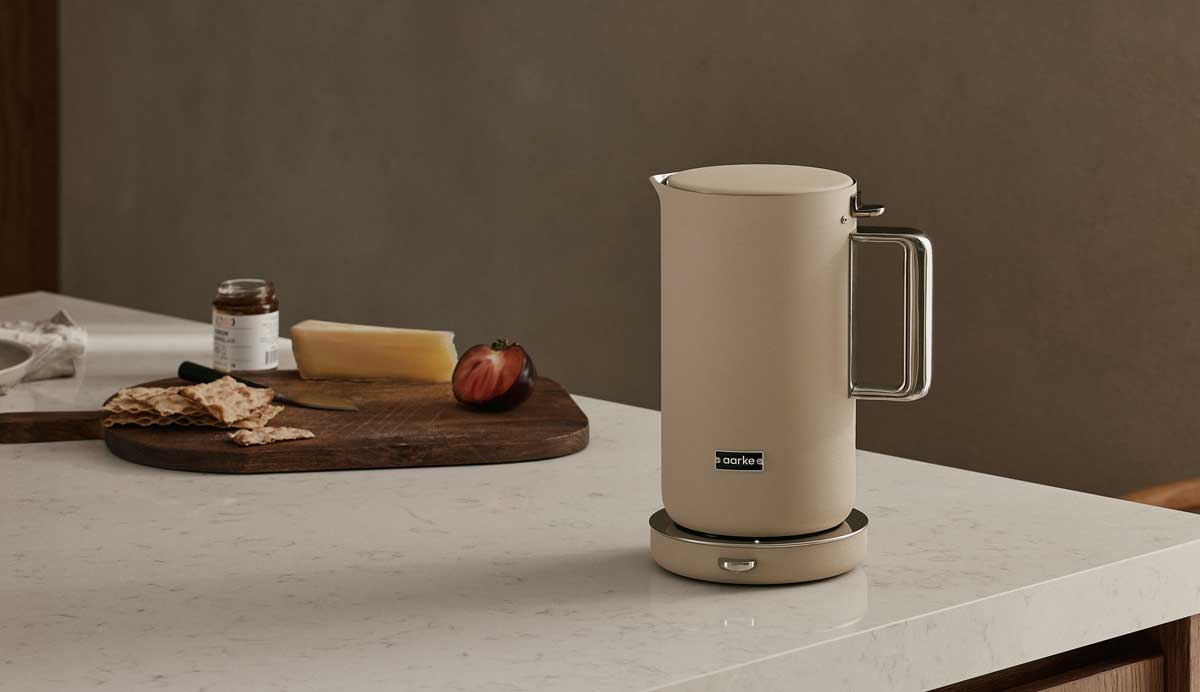 Gebürsteter Edelstahl trifft auf ein mattes, zurückhaltendes Finish – ruhig, bewusst und langlebig. Auch in der neuen Farbvariante überzeugt der Wasserkocher durch durchdachte Technik und klare Formensprache. Die doppelwandige Konstruktion verspricht flüsterleises Aufkochen, während fünf präzise Temperaturstufen von 40 bis 100 °C – inklusive Memory-Funktion – ihn zum Allrounder für Tee, Pour-over-Kaffee und bewusste Genussmomente im Alltag machen. Abgerundet wird das Design durch den tropffreien Ausguss im ikonisch minimalistischen Aarke-Stil.