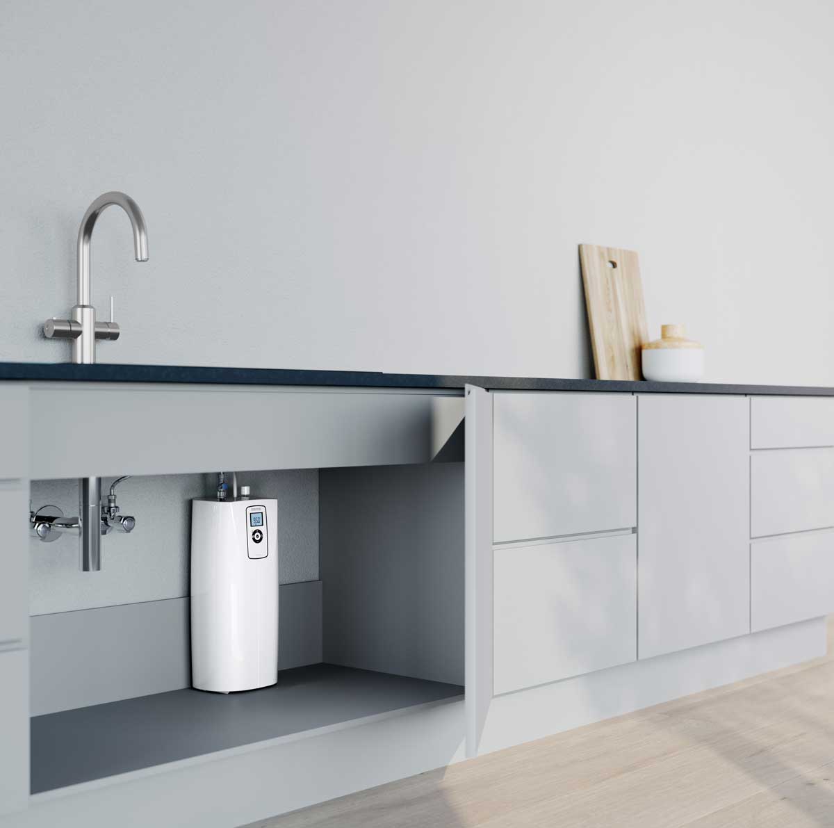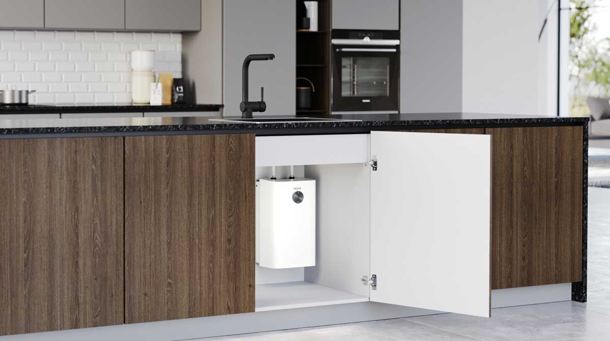 Sind hohe Warmwassertemperaturen in der Küche gewünscht, ist ein Kleinspeicher die richtige Lösung. Der Kleinspeicher SNU Plus von Stiebel Eltron hält je nach Ausführung temperaturstabil fünf oder zehn Liter warmes Wasser vor. „Die Maximaltemperatur ist mit 85 Grad höher als bei Durchlauferhitzern. Somit sind die Geräte perfekt geeignet für Anwendungen, bei denen kurzfristig, sehr heißes Wasser benötigt wird“, sagt Burkhard Max.